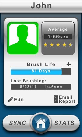 The interactive Beam app displays a 2 minute timer with the ability to play any song on the phone through the app while brushing. It even issues alerts when it’s time to replace the brush head and can even order it automatically! Multiple brushes can be managed from a single app, so the whole family can easily compare statistics and interact. A patient education section includes a plethora of professional dental content, and the Beam Goals feature allows all users to participate in achieving brushing milestones that result in real-world incentives. Dentists and health & wellness businesses are also involved in advertising products and services in prime locations on the app, as well as sponsoring Beam Goals for special promotions.